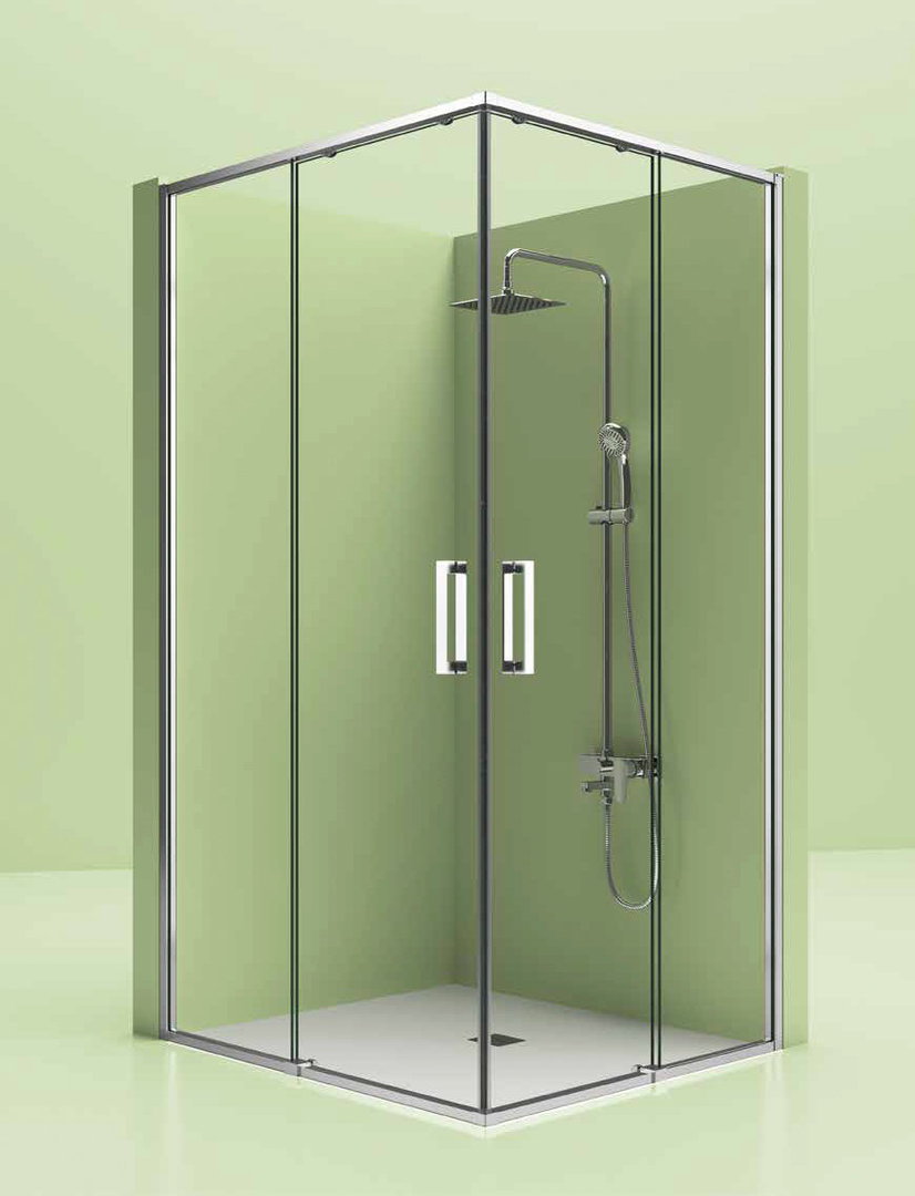 Mampara angular, fabricación nacional, cristal templado de suguridad de 6 mm transparente y perfilería aluminio plata brillo.